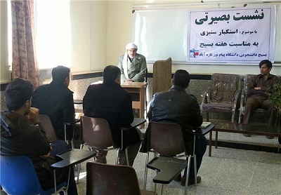 دشت حر : به مناسبت گرامیداشت هفته بسیج نشست بصیرتی اساتید و دانشجویان دانشگاه پیام نور ثلاث باباجانی با ماموستا ملا احمد شیخی امام جمعه شهرستان برگزار شد.